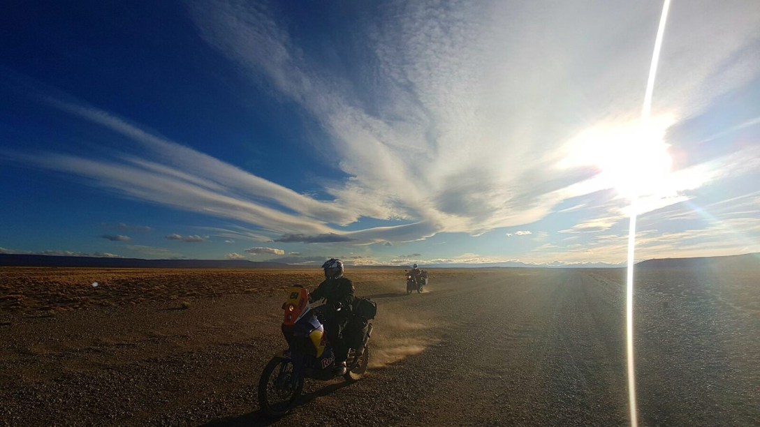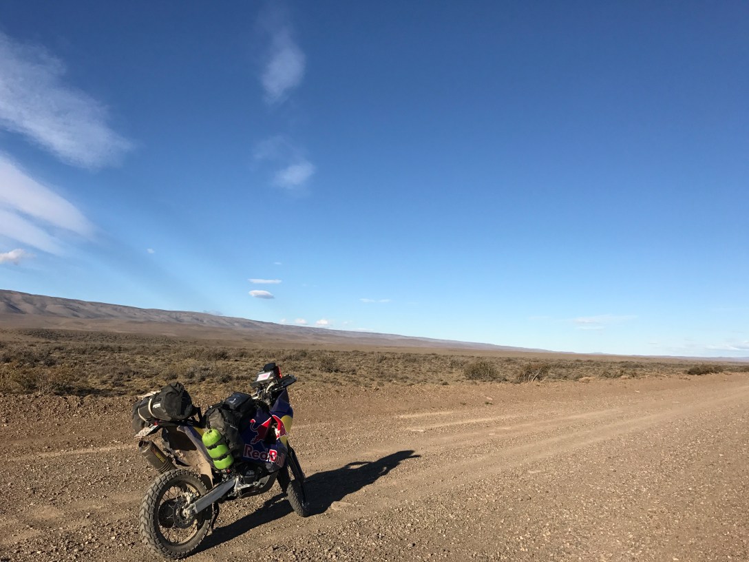 Nachdem ich vor ca. 1000km die chilenische Strasse Caretera austral verlassen habe um über den Pass „Paso Robalio“ wieder nach Argentinien überzutreten änderte sich die Umgebung schlagartig. Aus wunderschönen Wasserfällen, Seen, Flüssen und Gletschern wurde plötzlich eine unglaublich weite Wüste. Nichts außer große Steine und Grasbüschel so weit das Auge reicht. Die Straße wurde extrem schlecht und so fuhr ich bei unglaublich starkem Seitenwind 320km auf eine Ort zu der auf meiner Straßenkarte als Stadt verzeichnet war. Ohne unterwegs ein einziges Mal Gegenverkehr oder sonst einem Menschen gesehen zu haben erreichte ich die Stadt „Bajo Caracoles“ , welche sich aber als ein kleines Nest mit 5 Einwohnern entpuppte. Diese fünf saßen alle in der Tankstelle tranken Bier, würfelten und waren alle samt extrem komische Vögel… die ganze Szenerie hatte etwas von einem schlechten Horrorfilm…