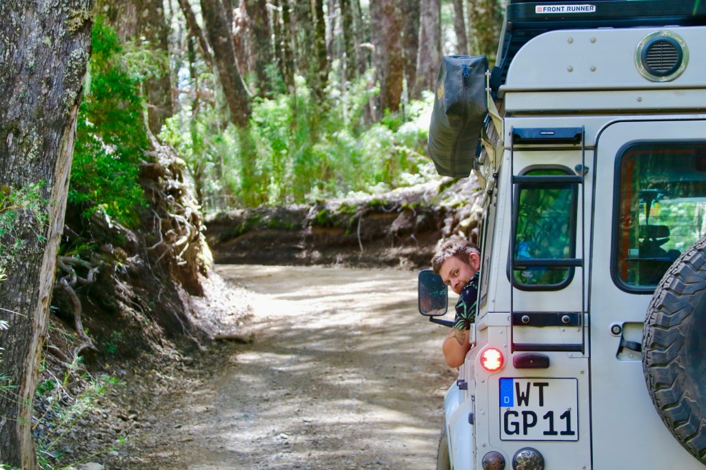 Ebenfalls aus dem Jahre 2017 kenne ich den Nationalpark Melipeuco noch. Ich kann mich noch gut an die klaren Seen erinnern und freue mich, als wir den ersten dieser Seen erblicken. Es ist ein lustiges, gar unbeschreibliches Gefühl, wenn man an einem Ort ist, den man das letzte mal vor ungefähr sieben Jahren das letzte mal besucht hat. Hie und da schiessen einem Erinnerungen ins Gedächtnis und ich sehe mich vor dem geistigen Auge mit meiner 450 Rally durch den Park rasen. Irgendwie bin ich froh, jetzt im Defender zu sitzen. Wenn die Landschaft links und rechts von einem langsamer vorbeizieht bekommt man viel mehr mit. Ich weiss noch, damals hat mein „Speed“ oft für Streitigkeiten mit meinem alten Herrn gesorgt – heute, vielleicht eine Spur weiser als damals wage ich zu verstehen warum es so schön ist langsam durch die Gegend zu Fahren und die unglaublichen Naturwunder wahrhaft aufzusaugen.