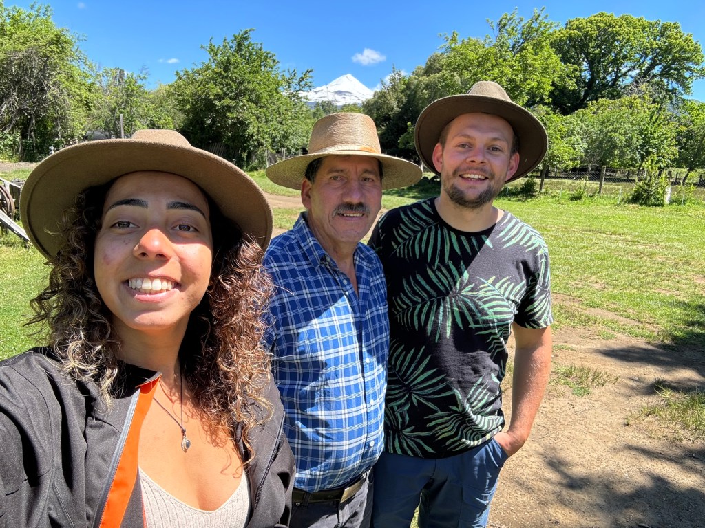 Auf dem Weg dorthin kreuzten wir das kleine Städtchen Melipeuco. Ein kleiner Ort in der Provinz Cautín. Bereits im Jahr 2017 besuchte ich diesen Ort und wir hatten eine Wunderbare Zeit auf einem kleinen Eco-Campingplatz. Was mir von damals noch in Errinerung blieb, war Hermano, der Besitzer des Platzes und gleichzeitig Bauer auf dem anliegenden Hof. Nach ein bisschen Suche fand ich den Platz wieder – schon beim einfahren auf dem Hof kam uns Hermano entgegen – ich erkannte ihn sofort wieder. Er war durchaus verblüfft, als ich ihn mit seinem Namen ansprach. Und schon kamen wir uns Gespräch… es ging eine Weile bis er Verstand, warum ich plötzlich und so erfreut bei ihm hereinplatzte.